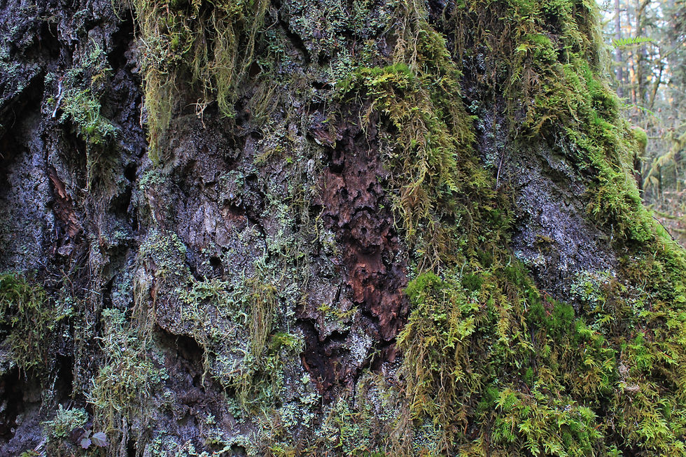 The park’s Fern Creek Trail traces an arc around the former site of a campground closed because of the risk of giant limbs plunging a couple hundred feet down onto unsuspecting tenters. The trail, however, is the perfect spot for immersion in this old forest. Professional Shinrin-yoku guides issue “invitations,” suggestions for ways to facilitate a personal connection on deeper levels. One of my favorites: sit quietly next to a giant Douglas fir. Breathe. Listen. Soon you will hear the tiny sounds of the community of life that exists just in the furrows of the thick bark. Look. You will see insects, webs, delicate reproductive structures of moss plants. So much life, so much happening, so easily overlooked.